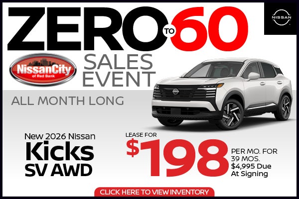VIN # 3N8AP6CB8TL338516 STK # RB260133. Lease for $198 per month with $4,995 Due at Signing Includes Bank Fee and First Payment. Consumer Pays Tax, Doc Fee $995 and DMV Fees. Monthly payments total $7,722. Subject To Primary Lender Approval. Includes All Factory Rebates and Incentives. Subject to availability to well-qualified lessees through Nissan Motor Acceptance Company. $28,440 MSRP. incl. destination charge. Lease Selling Price $27,690 Does Not include an acquisition fee. Dealer contribution may affect the actual price set by dealer. At lease end, purchase option fee up to $300, plus tax, or pay excess wear & use plus $0.25 per mile for mileage over 5,000 miles per year. Lessee is responsible for maintenance and repairs. A disposition fee is due at termination of lease term. No security deposit required. Must take delivery from new dealer stock. No refund or credit on unused miles. Subject to residency restrictions. Disposition fee is due at lease end if Program Lessee does not exercise the purchase option. No security deposit required. Other restrictions apply. Contact the dealer for complete details. Offer is subject to change at any time and/or is subject to termination without notice. Offer ends 04/30/2026.