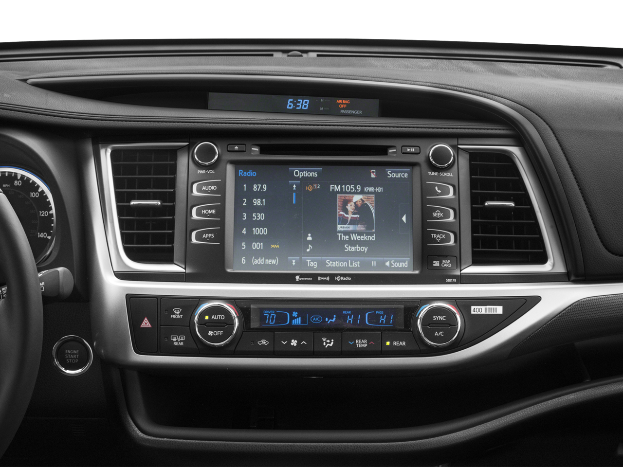 - AM/FM/HD/Satellite w/Seek-Scan, In-Dash Mounted Single CD, MP3 Player, Clock, Speed Compensated Volume Control, Aux Audio Input Jack, Steering Wheel Controls, Voice Activation, Entune External Memory Control and Internal Memory