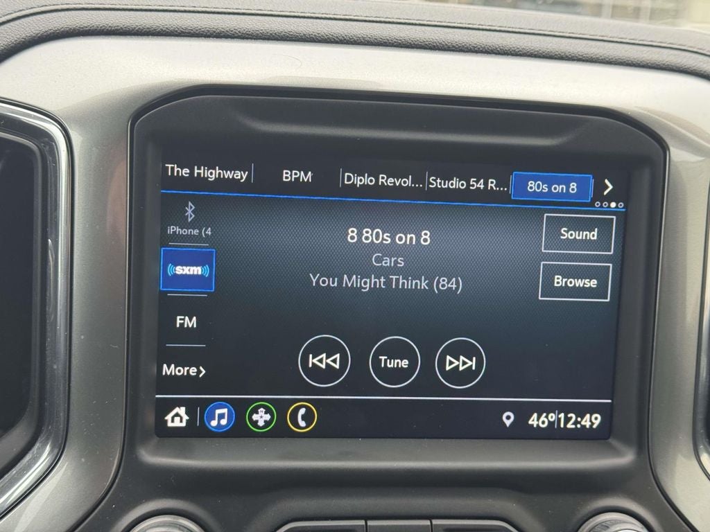 - Audio system, Chevrolet Infotainment 3 system 8" diagonal color touchscreen, AM/FM stereo. Additional features for compatible phones include: Bluetooth® audio streaming for 2 active devices, voice command pass-through to phone, wired Apple CarPlay and Android Auto capable.
