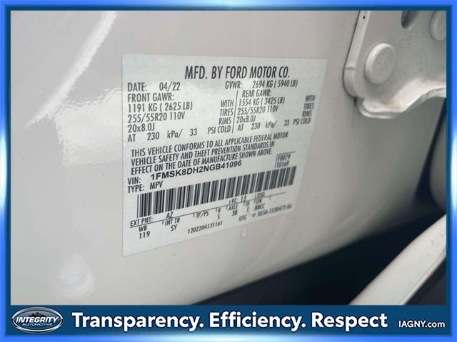 - SYNC 3 Communications & Entertainment System -inc: enhanced voice recognition, 8" LCD capacitive touchscreen in center stack w/swipe capability, AppLink, 911 Assist, Apple Car Play and Android Auto compatibility and 1 "A" and 1 "C" USB ports in the media hub