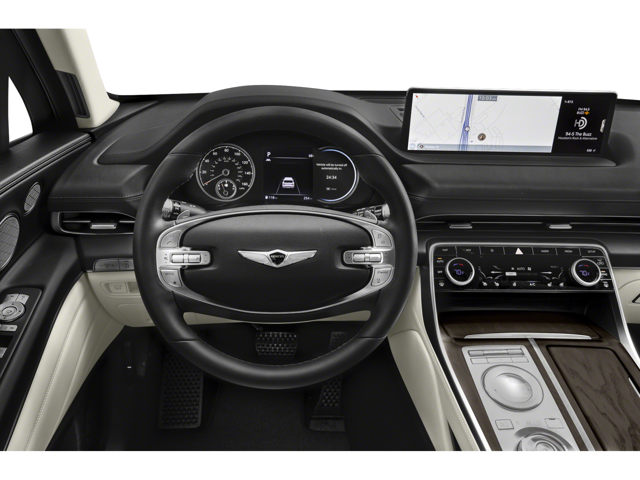 - Radio: AM/FM/SiriusXM/HD Premium Audio System -inc: 6-channel internal amplifier, integrated navigation, 14.5" HD LCD screen, Apple CarPlay and Android Auto, Bluetooth® hands-free phone system w/audio streaming, steering wheel controls, USB and Genesis Connected Services