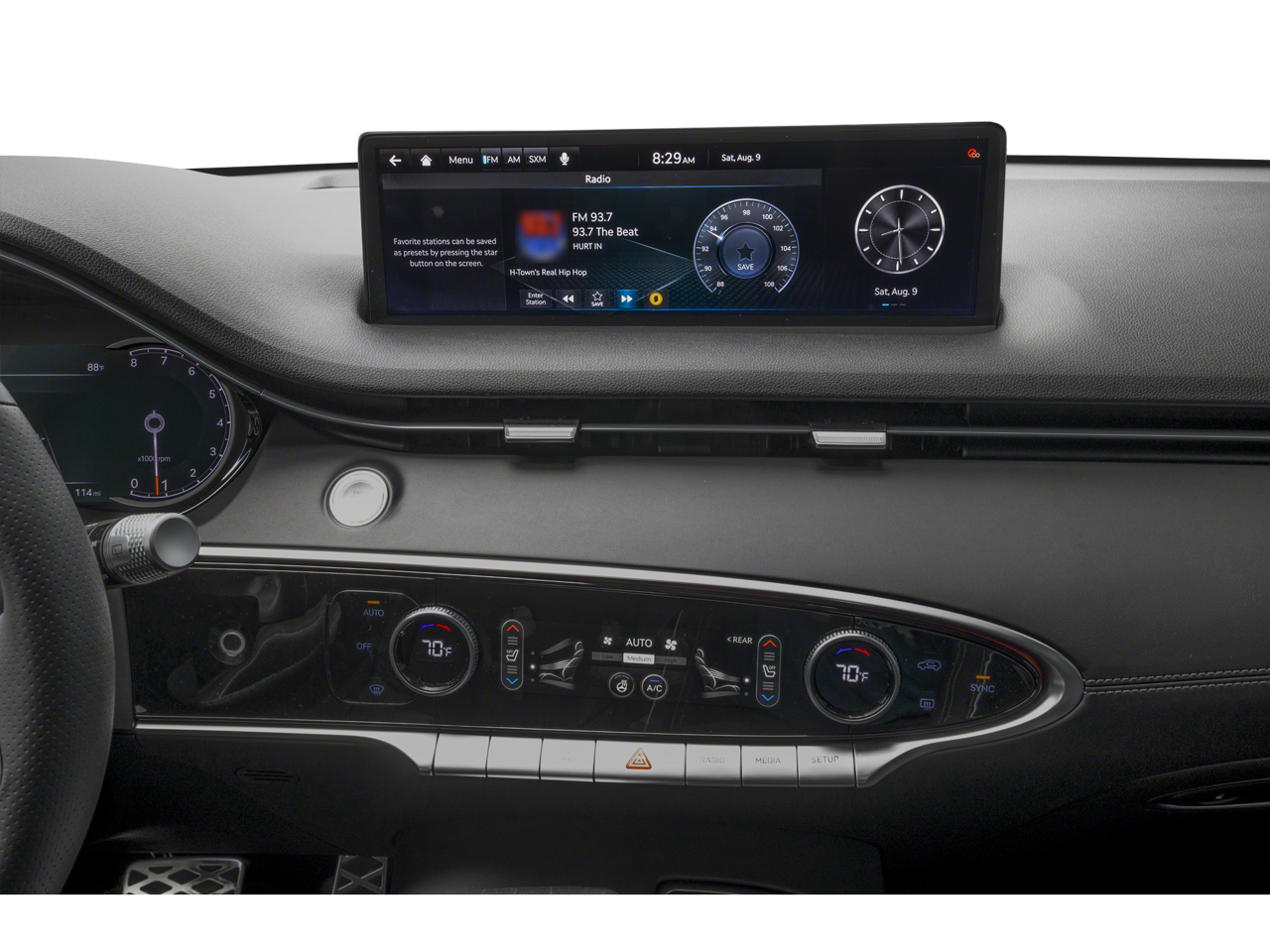 - Radio: 14.5" Navigation System w/AM/FM/HD Radio -inc: SiriusXM radio w/90-day trial subscription (N/A in AK or HI), Android Auto and Apple CarPlay, Genesis Connected Services, Bluetooth® hands-free phone & audio streaming system, premium audio w/9 speakers, WiFi hotspot, internal amplifier and USB port